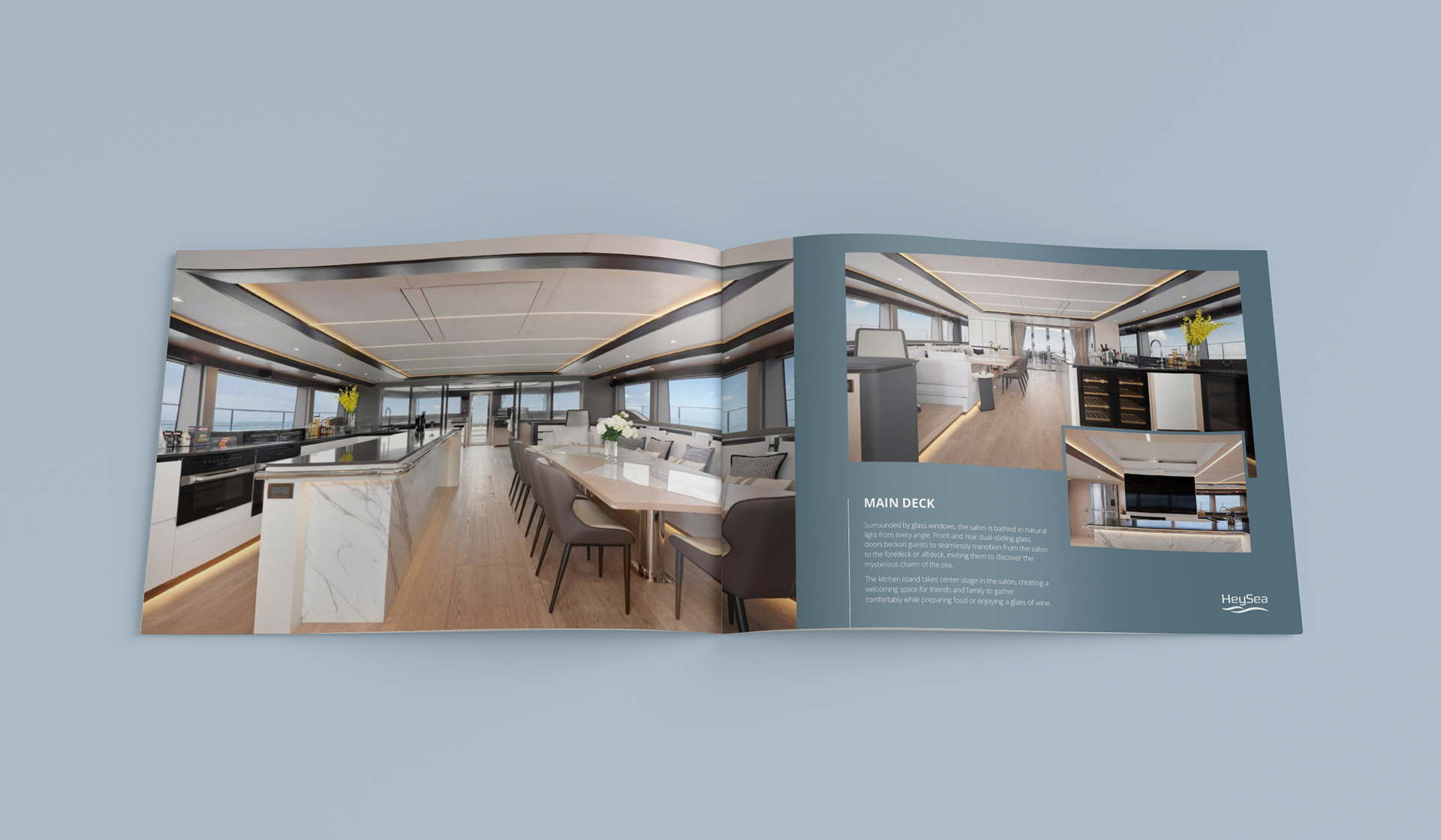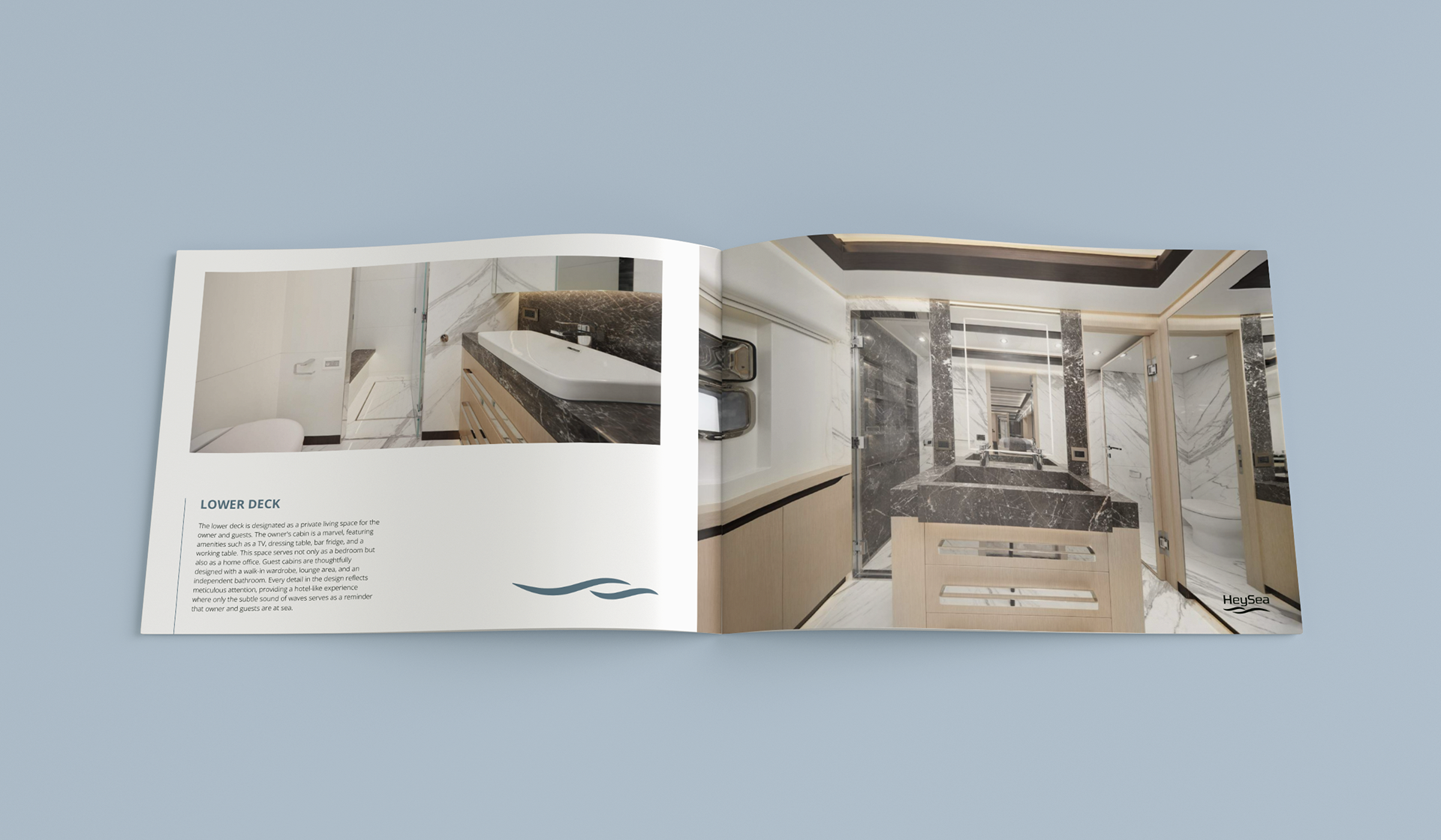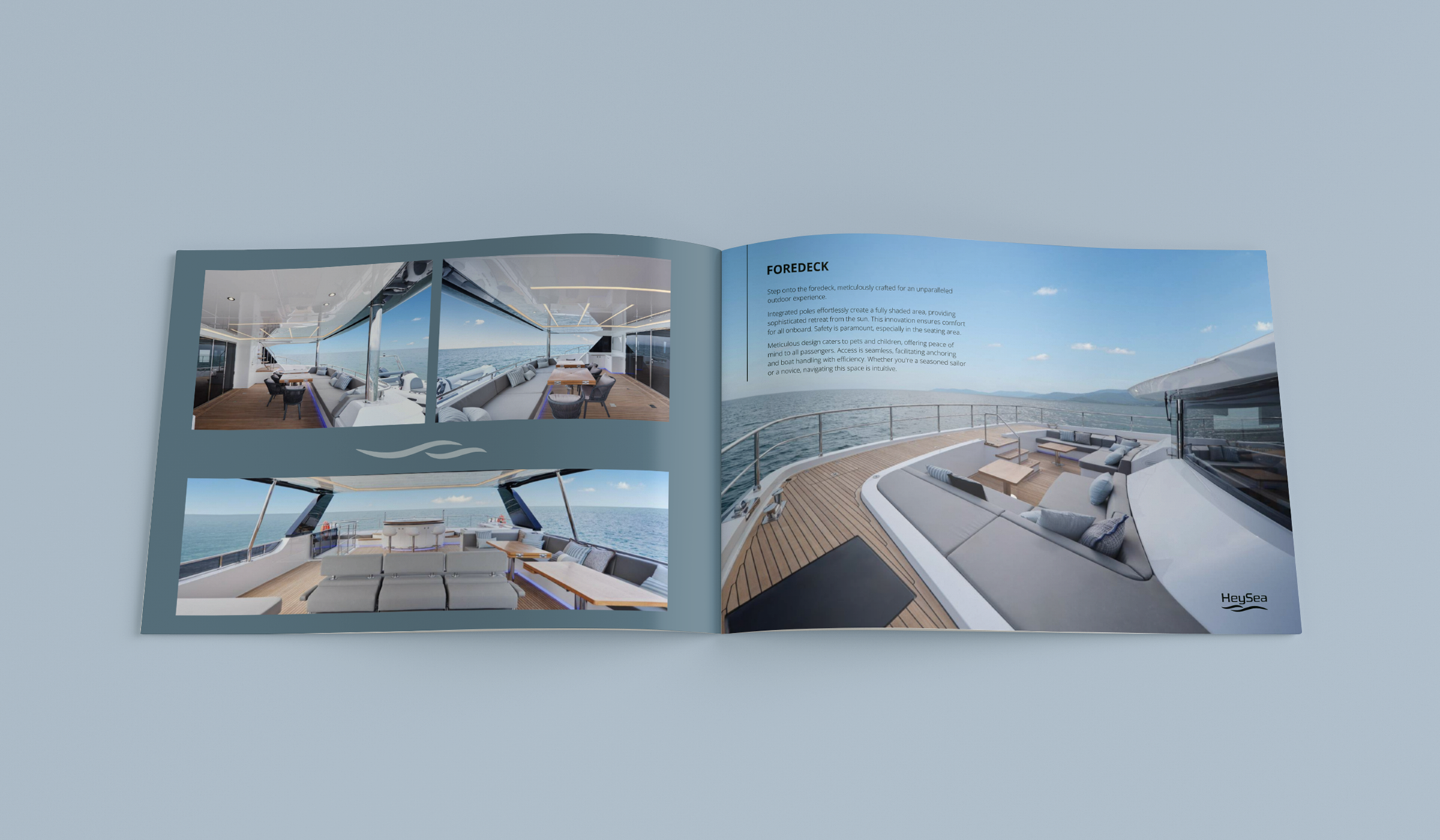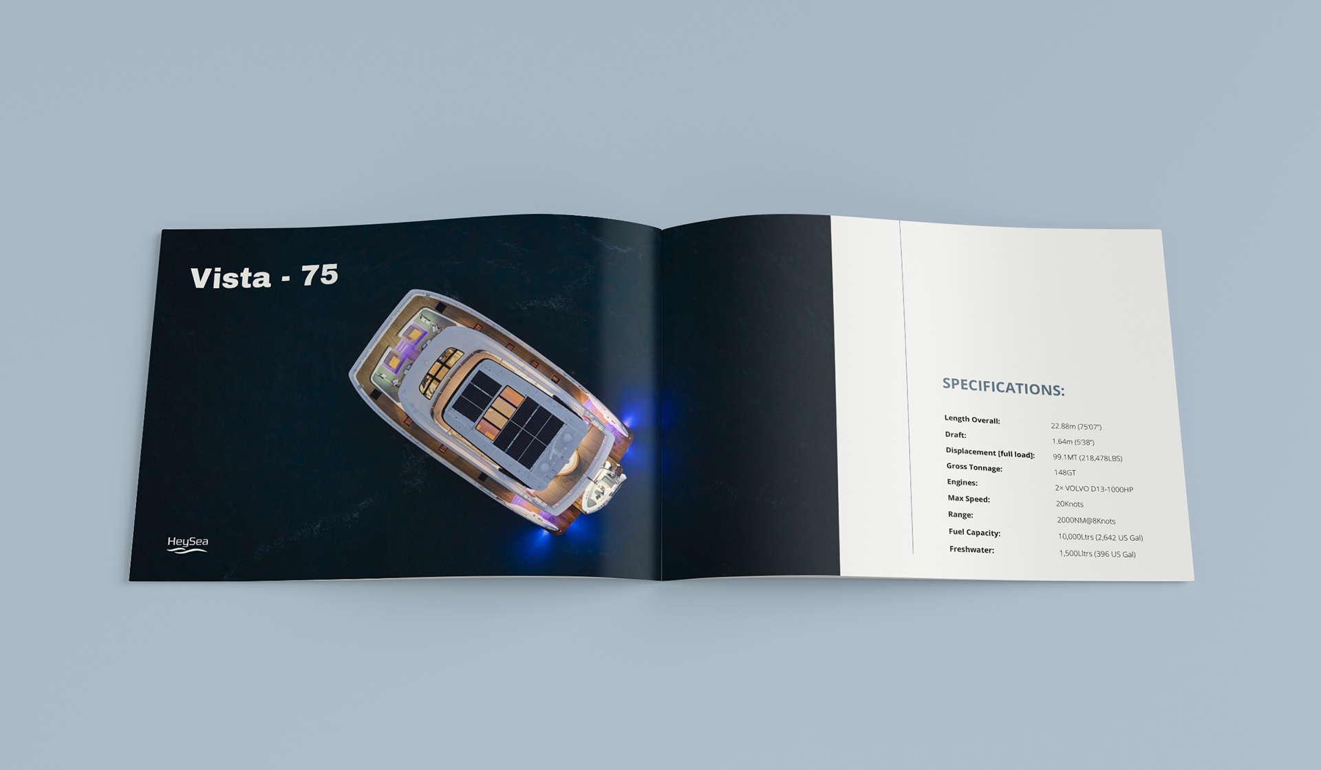 This brochure was designed as a premium promotional piece for a luxury yacht, highlighting its elegant design, advanced features, and high-end lifestyle experience. The layout combines clean visuals with engaging content to showcase the yacht’s performance, comfort, and craftsmanship, providing potential clients with a clear and compelling presentation of the vessel.