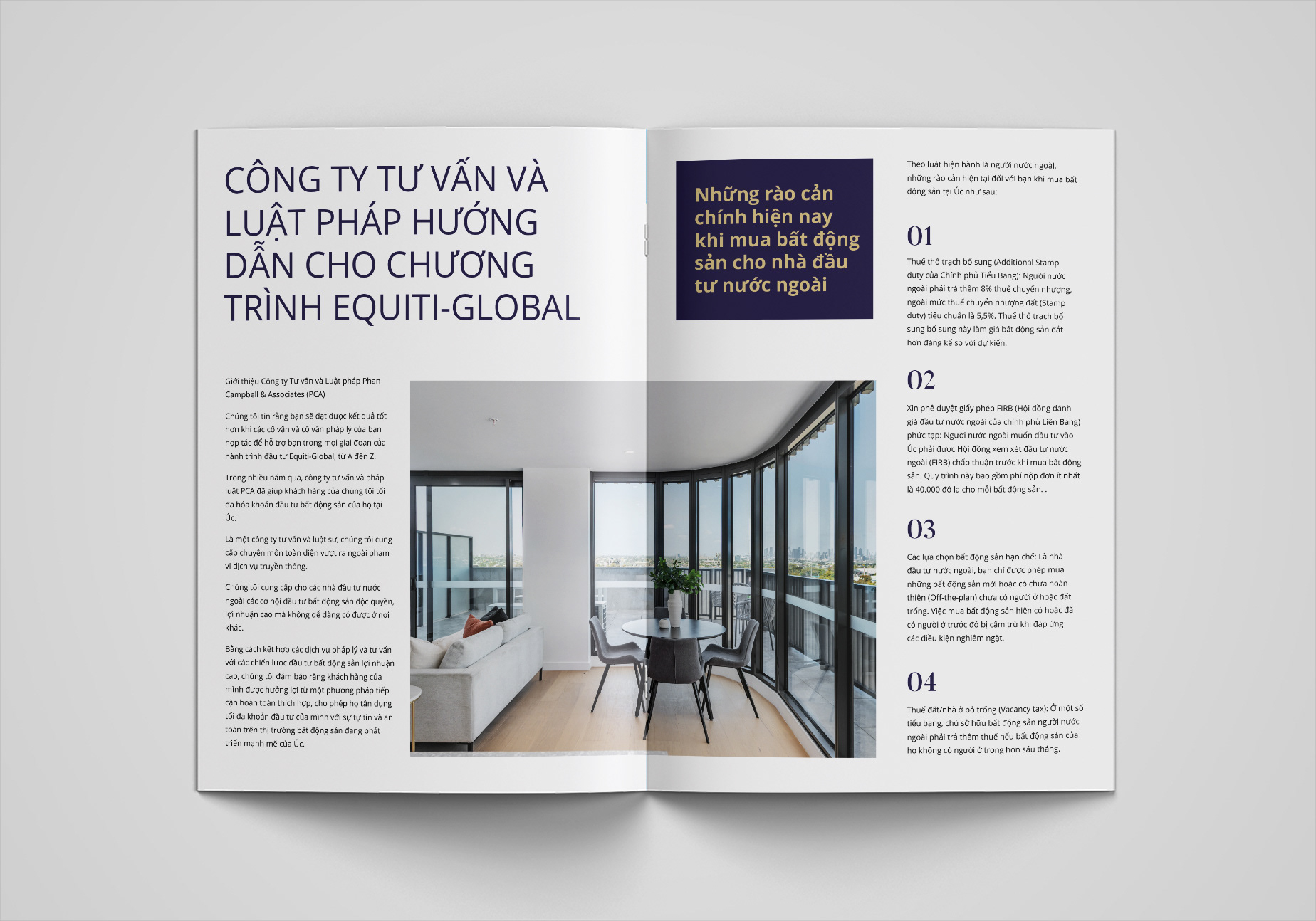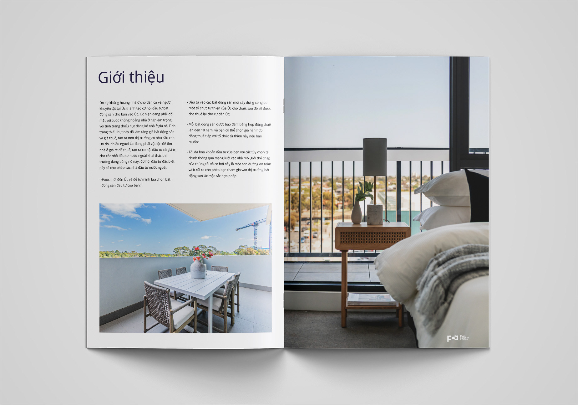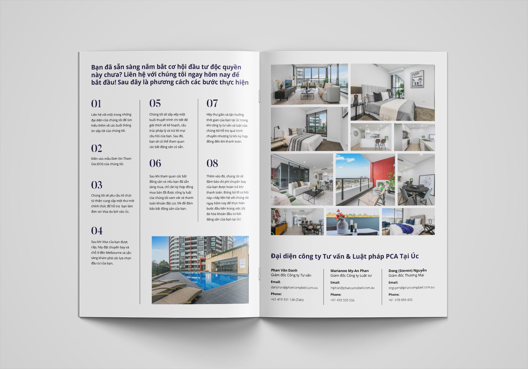 This brochure was designed for Phan Campbell Real Estate, an Australian property agency targeting the Vietnamese market. The goal was to create a modern, bilingual marketing piece that communicates trust, professionalism, and cultural connection between Australia and Vietnam.